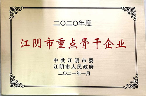 公司被評為2020年度江陰市重點骨干企業(yè)
