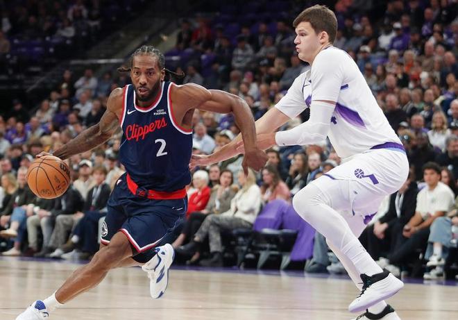 從比賽首節(jié),爵士就展現(xiàn)了極強的進攻火力,年輕球員凱斯勒和馬爾卡寧聯(lián)手打出高效進攻,迅速拉開比分。爵士首發(fā)陣容中的雙塔組合——新秀菲利波夫斯基搭配凱斯勒,在內(nèi)線形成了巨大優(yōu)勢。首節(jié)結(jié)束時,爵士以43-19領(lǐng)先,單節(jié)凈勝24分,幾乎為整場比賽定下了基調(diào)??齑瑒t在開局階段顯得毫無準備,球員在場上缺乏活力,防守端漏洞百出。主教練泰倫盧沿用了上賽季的陣容配置,將凱瓊斯放在三號位,倫納德被迫客串四號位,而祖巴茨獨自支撐內(nèi)線。這種安排顯然無法應對爵士的雙塔體系。